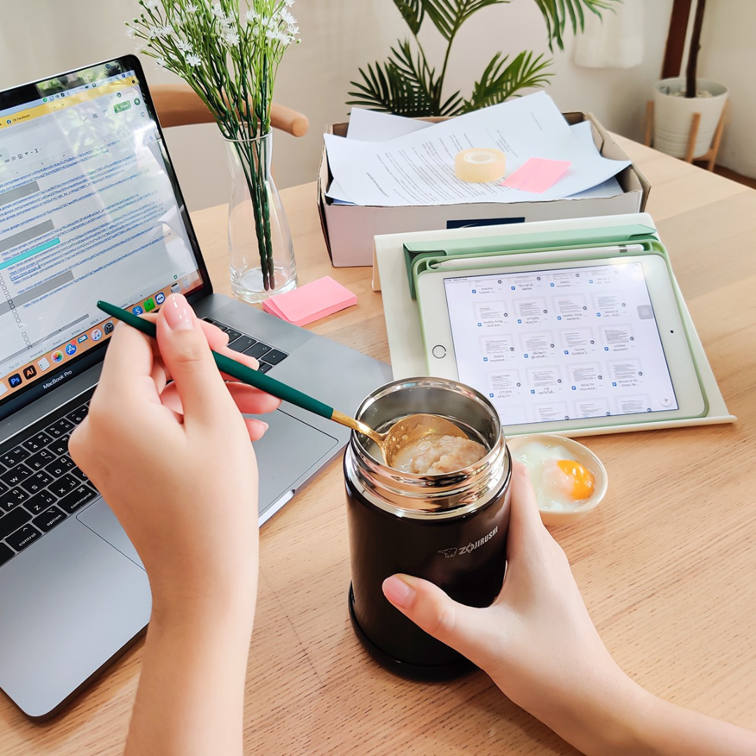 • Vacuum insulated stainless steel food jar keeps foods hot or cold for hours